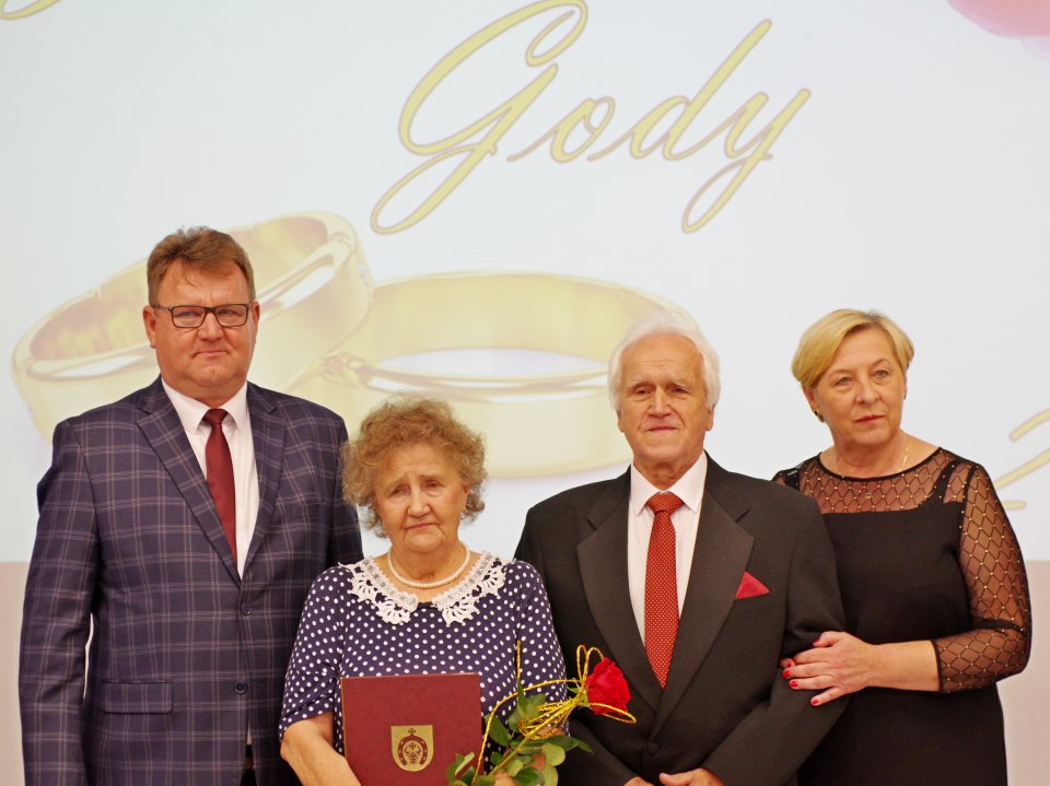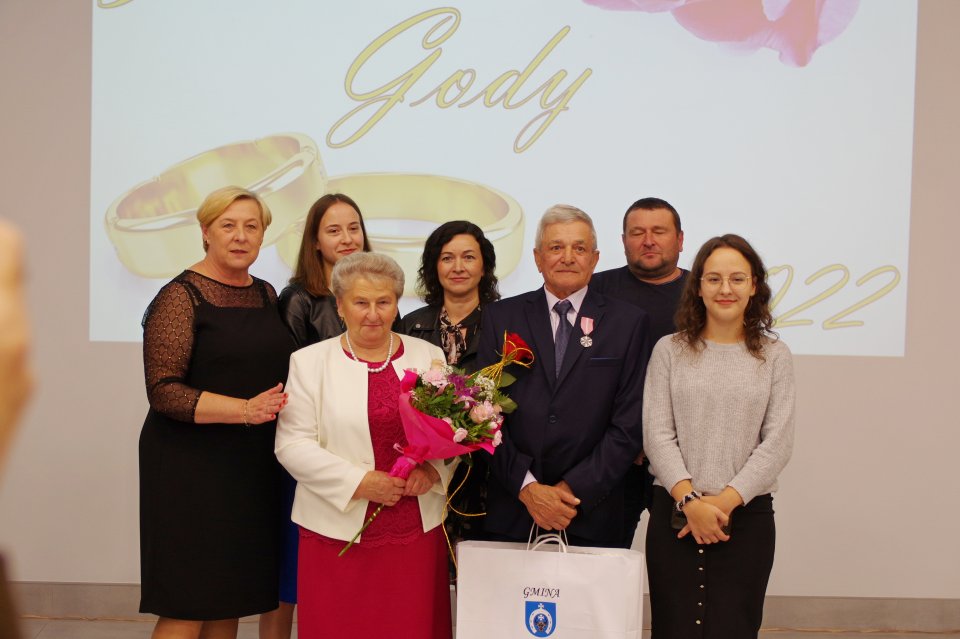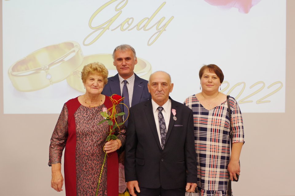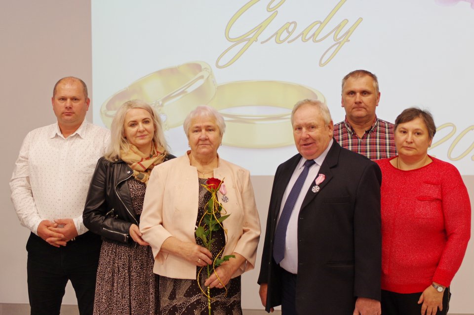 Podczas tej uroczystości Wójt Gminy Raisa Rajecka wraz z Przewodniczącym Rady Gminy i pracownikami Urzędu wręczyli Jubilatom medale za długoletnie pożycie małżeńskie, listy gratulacyjne, upominki okolicznościowe i kwiaty.